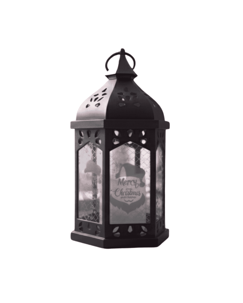 Home Shop Christmas Print Lantern with Electric Candle